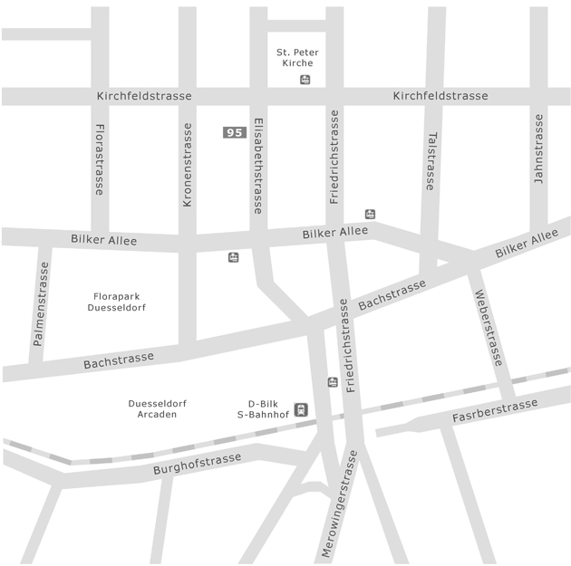 707, 708 到 D-Bilk S / Elisabethstraße 再步行大约8分钟